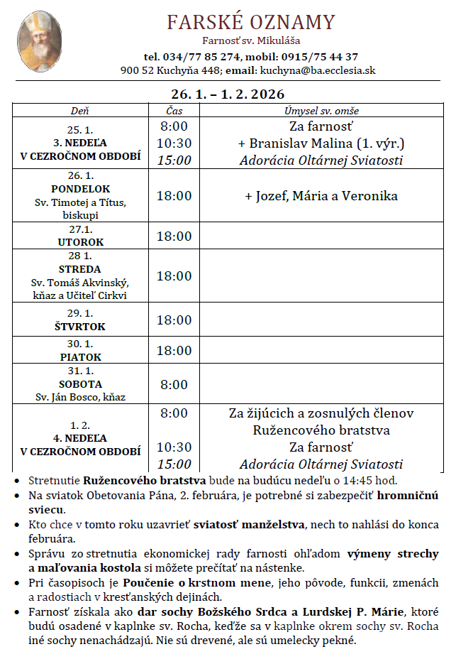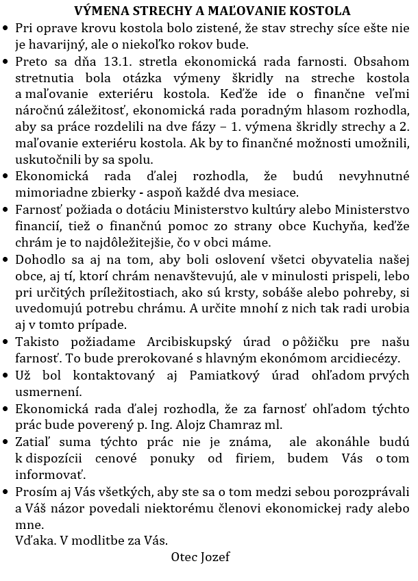 ČÍSLO FARSKÉHO ÚČTU: SK46 0200 0000 0001 3123 7112