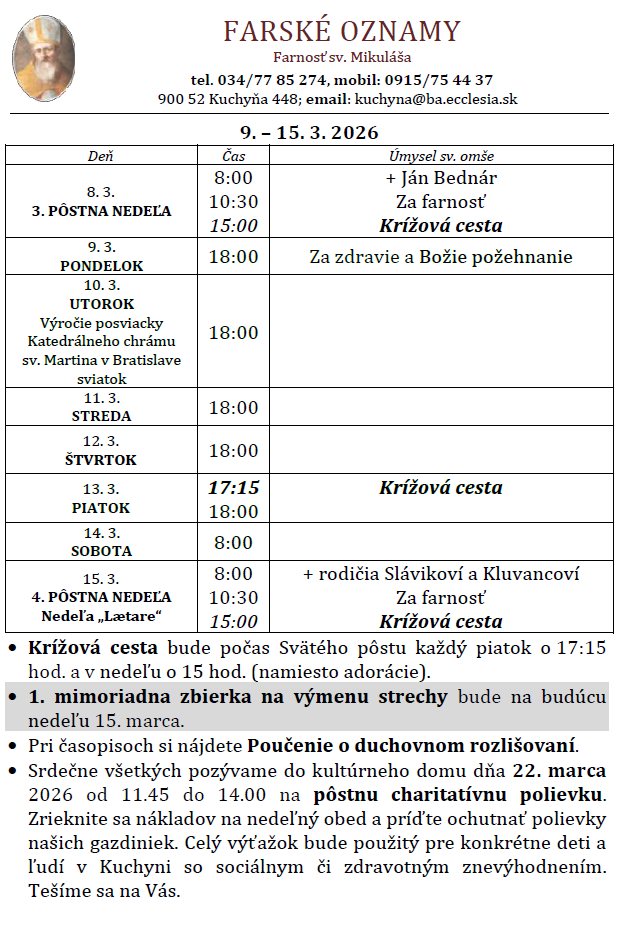 ČÍSLO FARSKÉHO ÚČTU: SK46 0200 0000 0001 3123 7112
